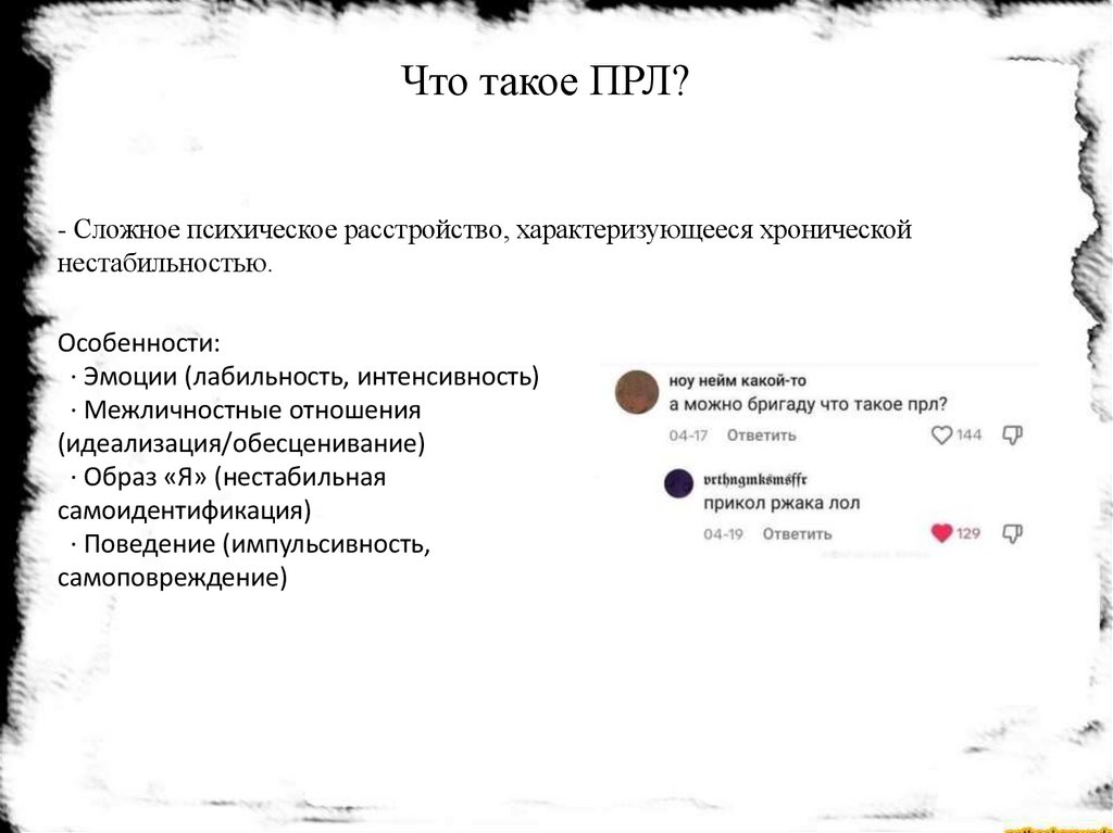 Что такое ПРЛ?- Сложное психическое расстройство, характеризующееся хронической