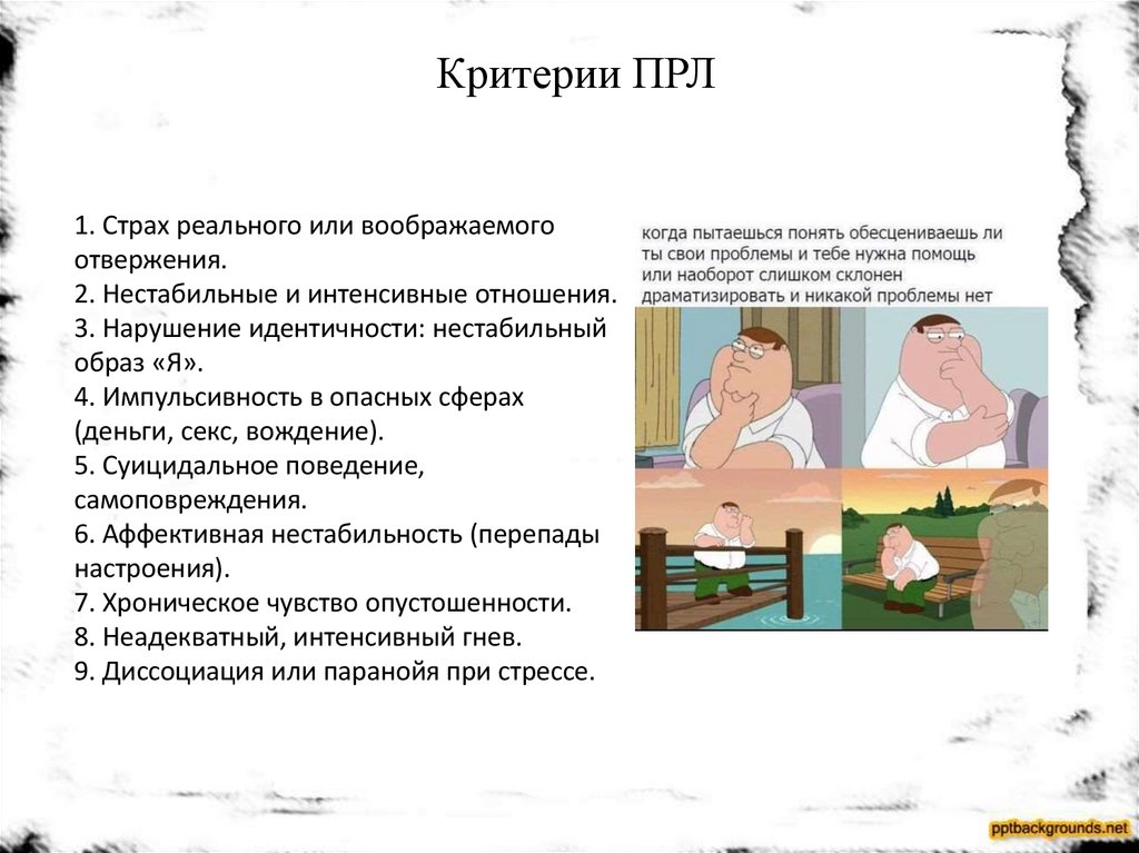 Критерии ПРЛ1. Страх реального или воображаемого