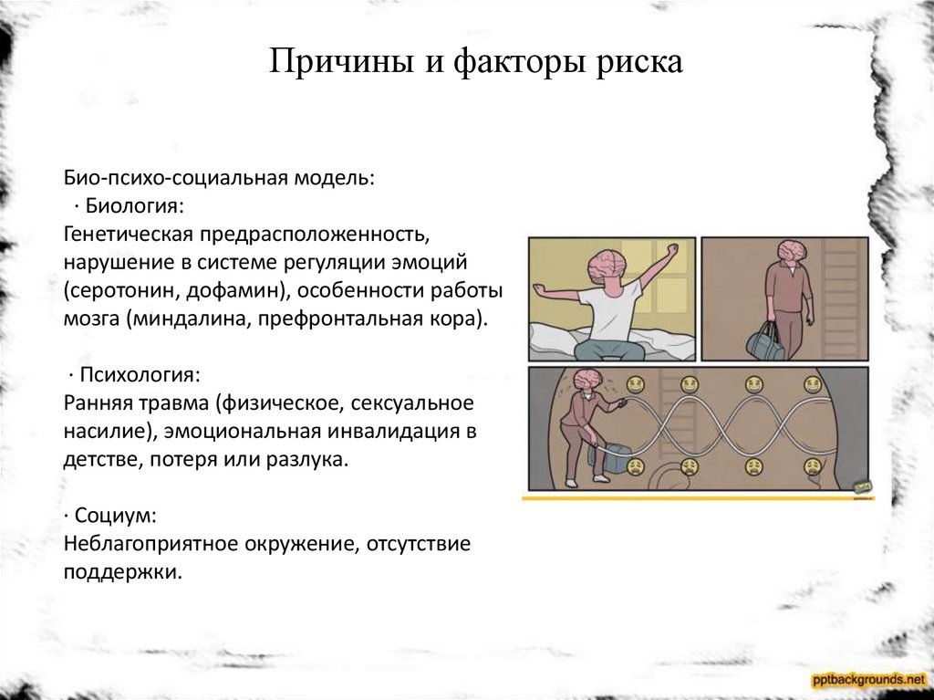 Причины и факторы рискаБио-психо-социальная модель: