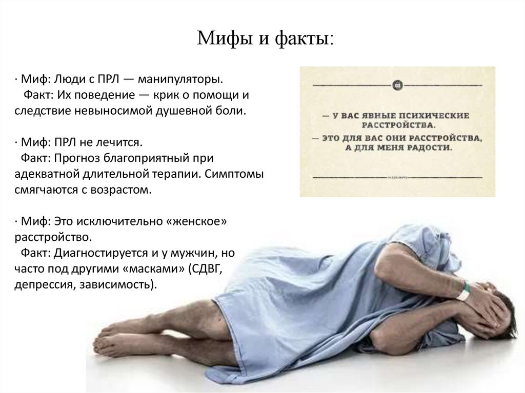 Мифы и факты:· Миф: Люди с ПРЛ — манипуляторы.