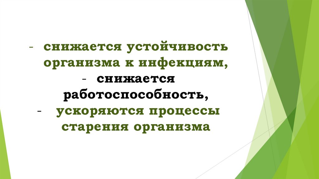 - снижается устойчивостьорганизма к инфекциям,