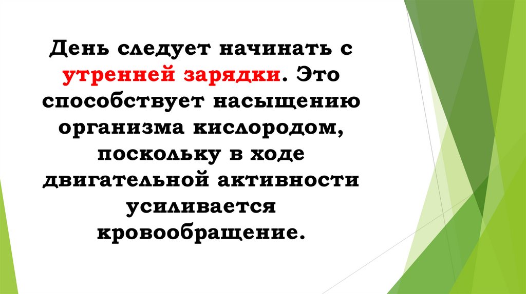День следует начинать сутренней зарядки. Это