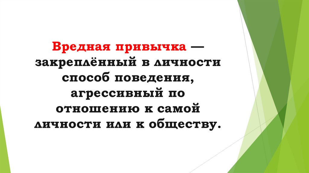 Вредная привычка —закреплённый в личности