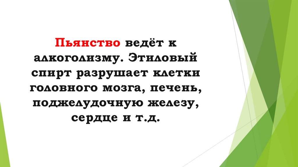 Пьянство ведёт калкоголизму. Этиловый