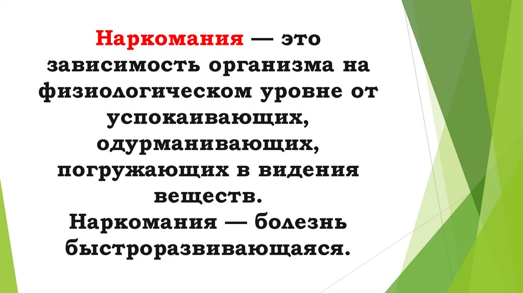 Наркомания — этозависимость организма на
