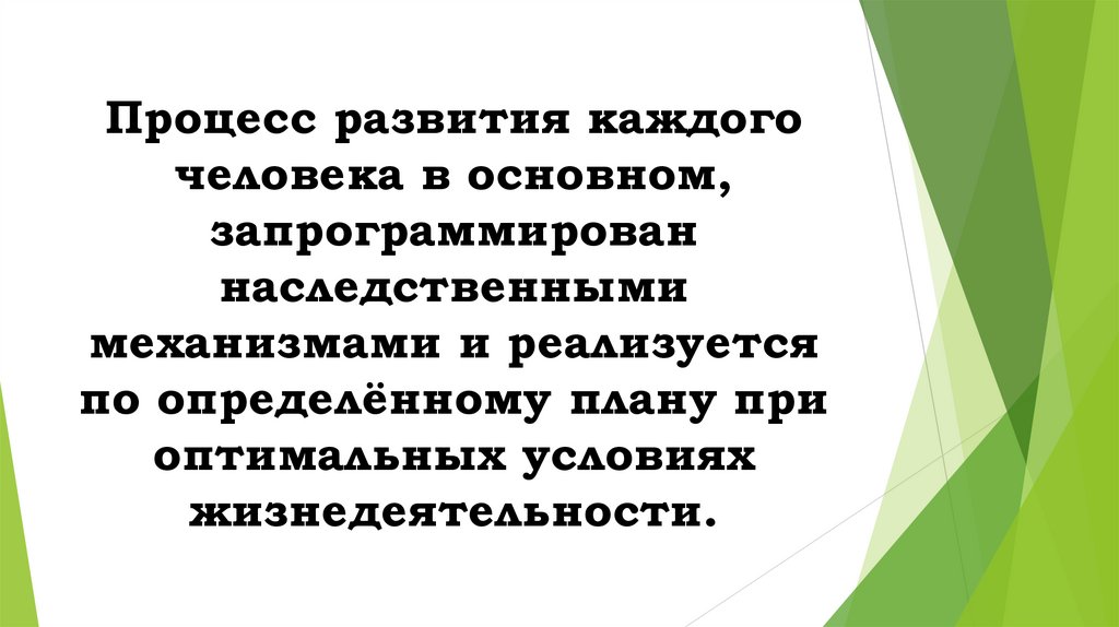 Процесс развития каждогочеловека в основном,
