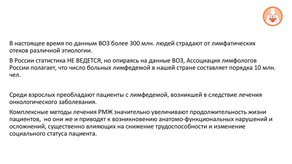 России полагает, что число больных лимфедемой в нашей стране составляет порядка 10 млн.