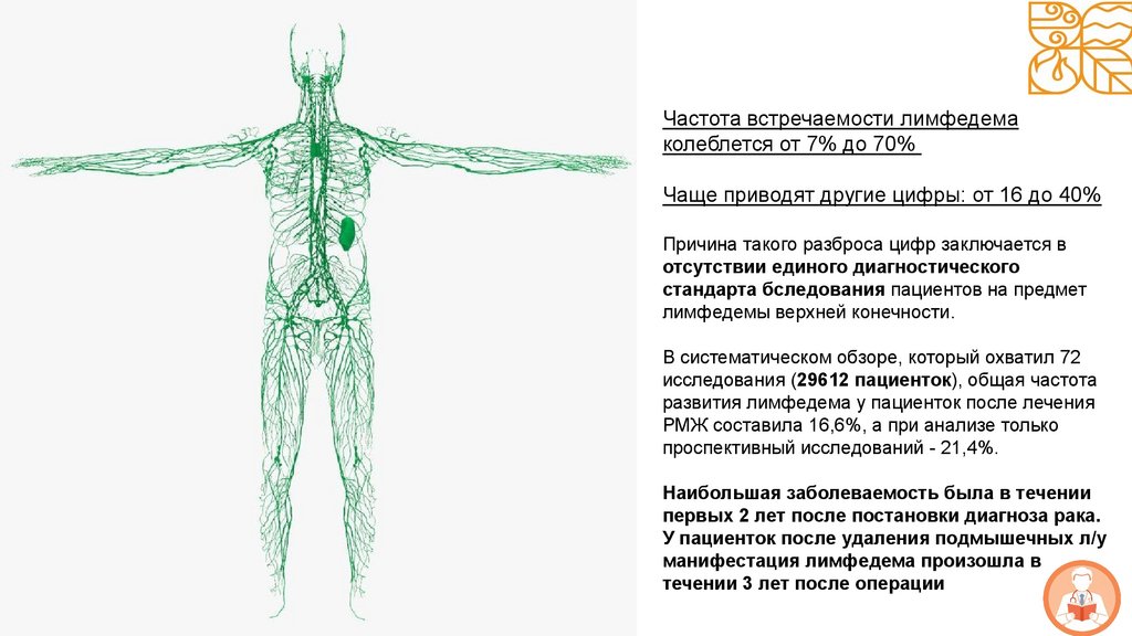 Частота встречаемости лимфедемаколеблется от 7% до 70%