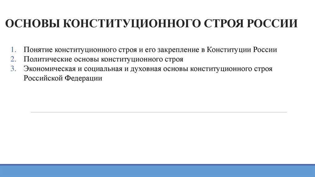 1. Понятие конституционного строя и его закрепление в Конституции России2. Политические основы конституционного строя