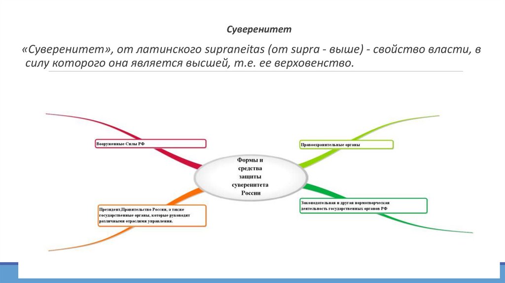 Суверенитет«Суверенитет», от латинского supraneitas (от supra - выше) - свойство власти, в