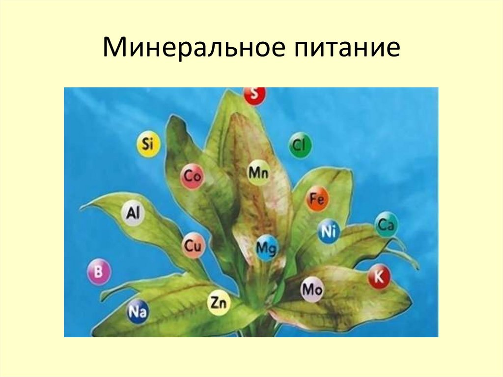 Микроэлементы: Fe, B, Mn, Cu, Zn, Mo, Cl, Ni, Na