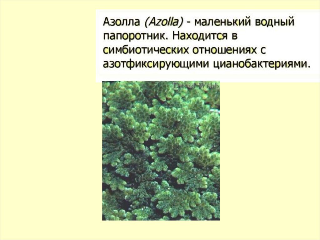 • Rhizobium sp – Бобовые• Цианобактерии – Голосеменные