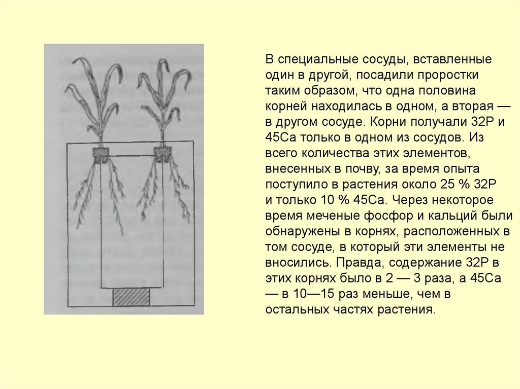 В специальные сосуды, вставленныеодин в другой, посадили проростки