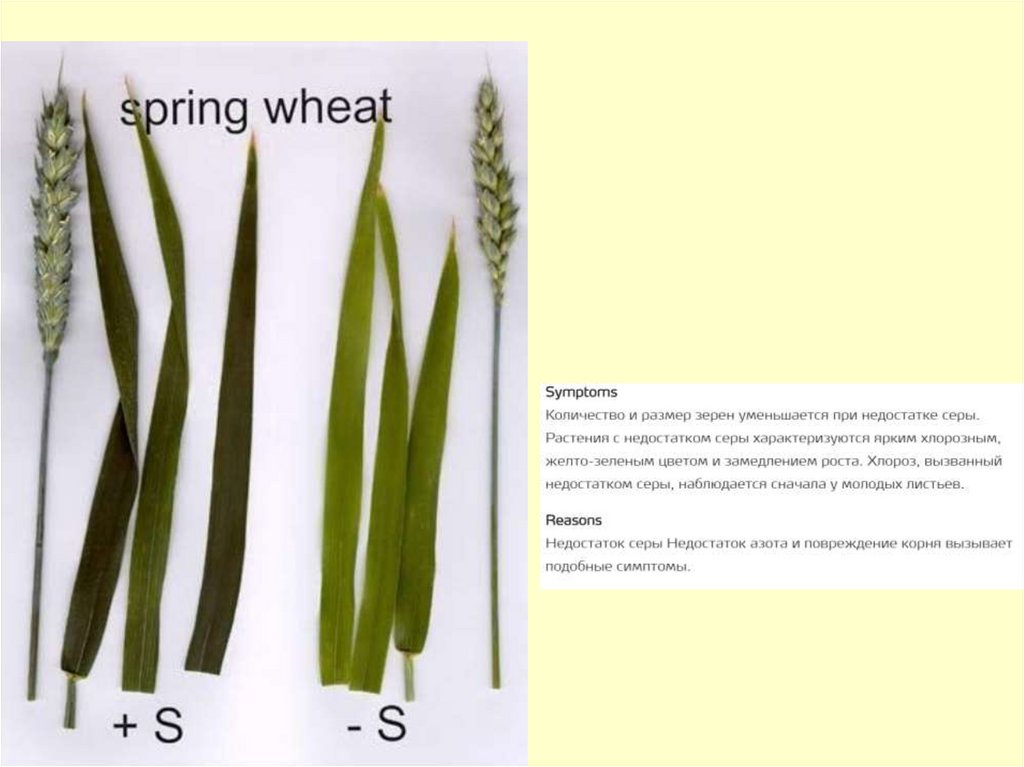 Макроэлементы: N ~ 1,5%, K ~ 1,0%, P ~ 0,2%, S ~ 0,1%, Ca ~0,5%, Mg ~ 0,2%