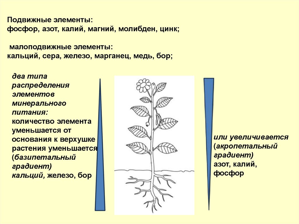 Подвижные элементы:фосфор, азот, калий, магний, молибден, цинк;
