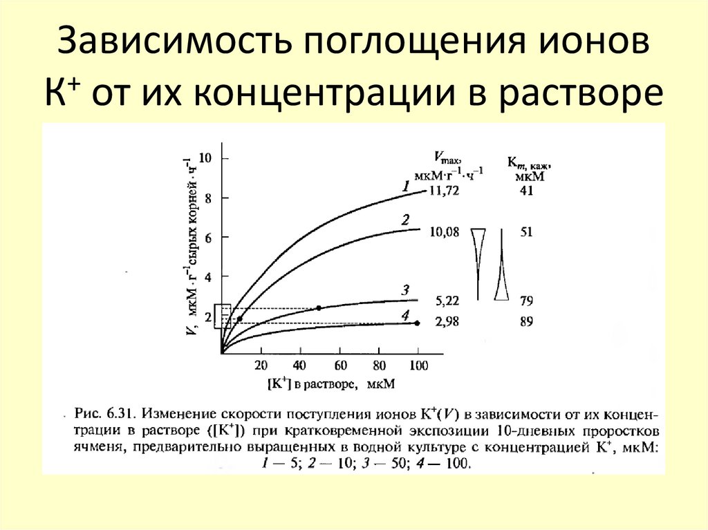 Зависимость поглощения ионовК+ от их концентрации в растворе
