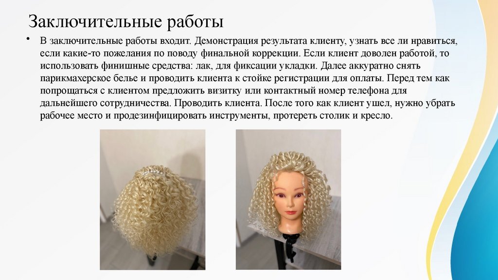 парикмахерское белье и проводить клиента к стойке регистрации для оплаты. Перед тем как