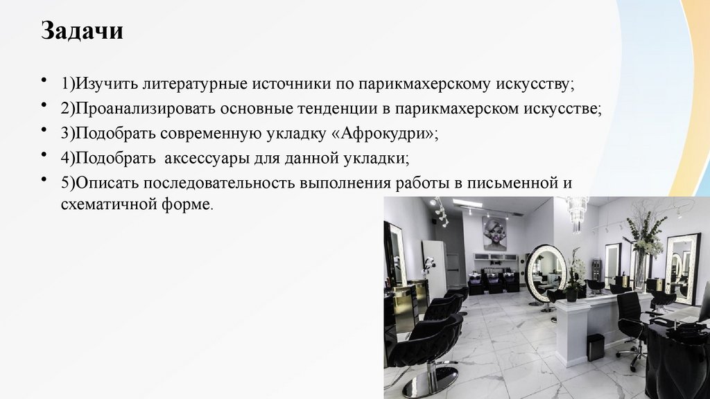 Задачи1)Изучить литературные источники по парикмахерскому искусству;