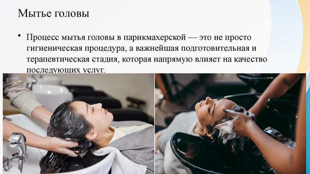 Мытье головы• Процесс мытья головы в парикмахерской — это не просто