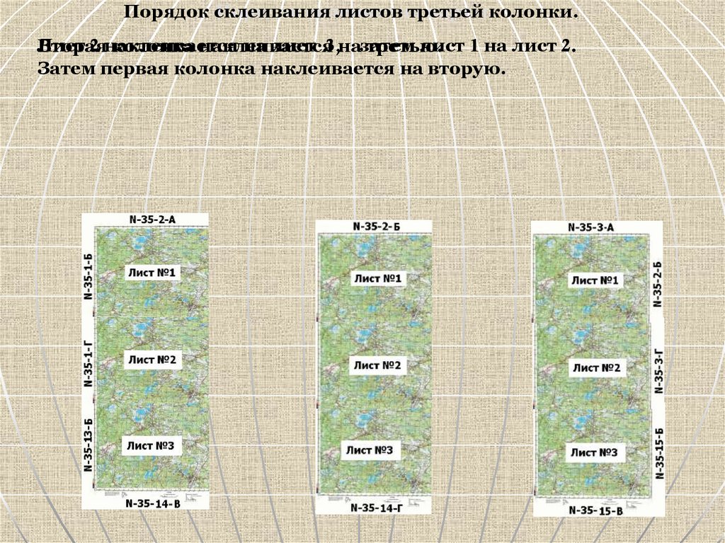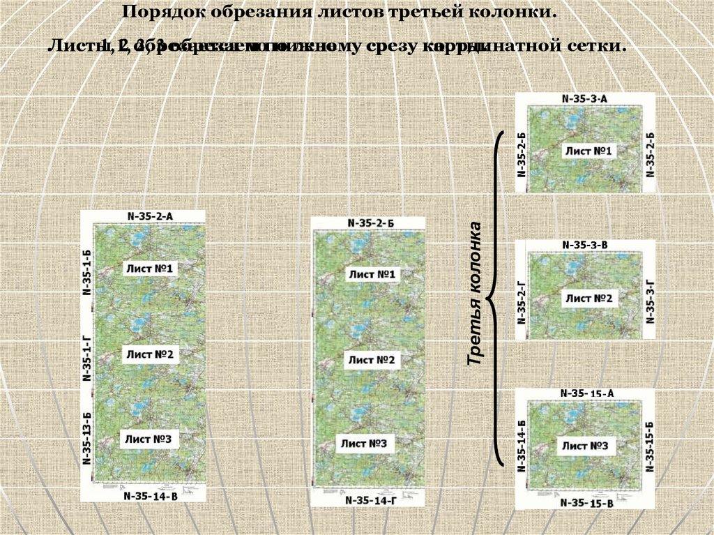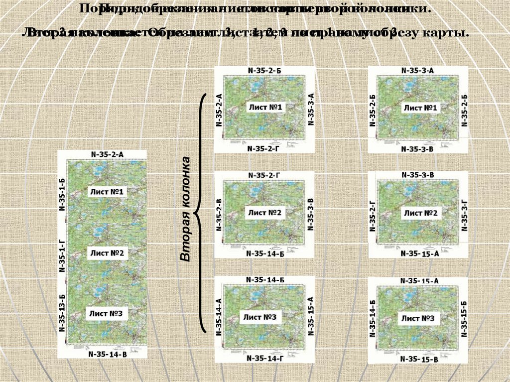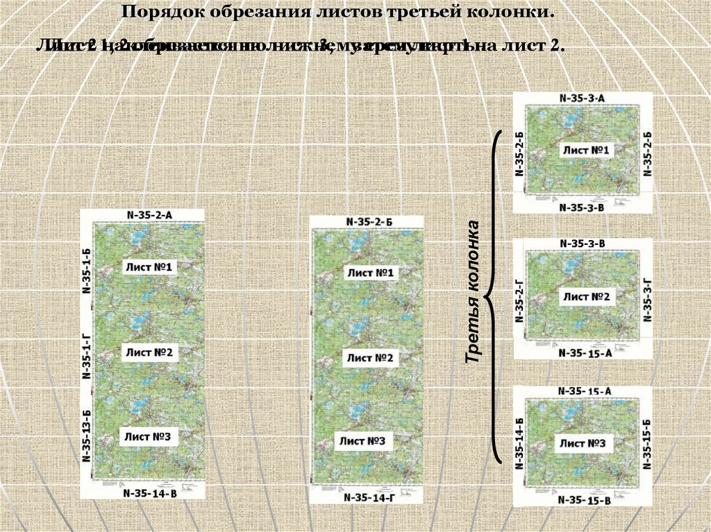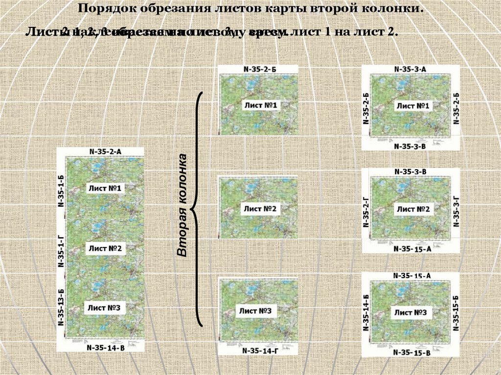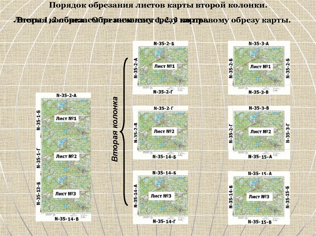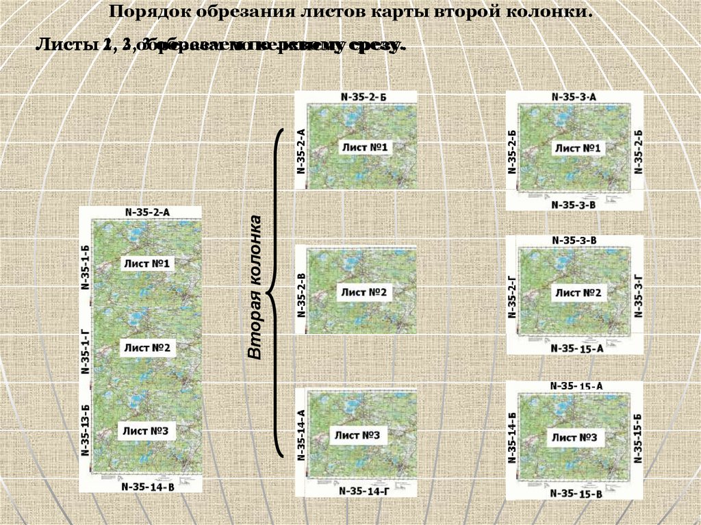 Порядок обрезания листов карты второй колонки.Вторая колонка