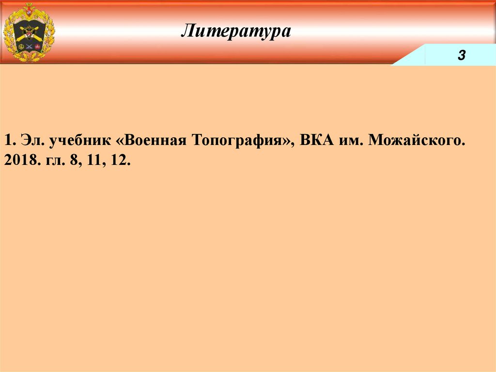 1. Эл. учебник «Военная Топография», ВКА им. Можайского.