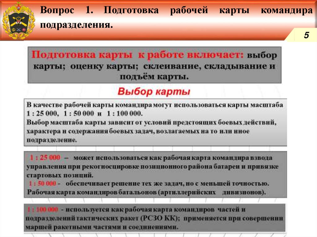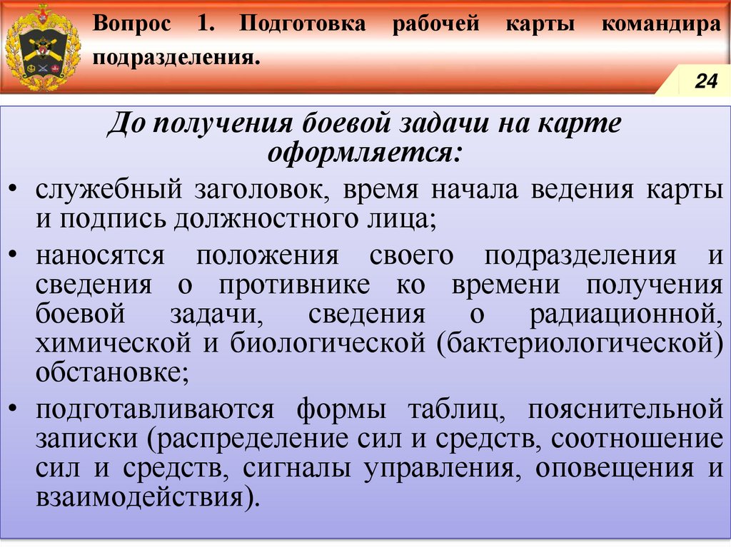 Подготовка рабочей карты командира подразделения.