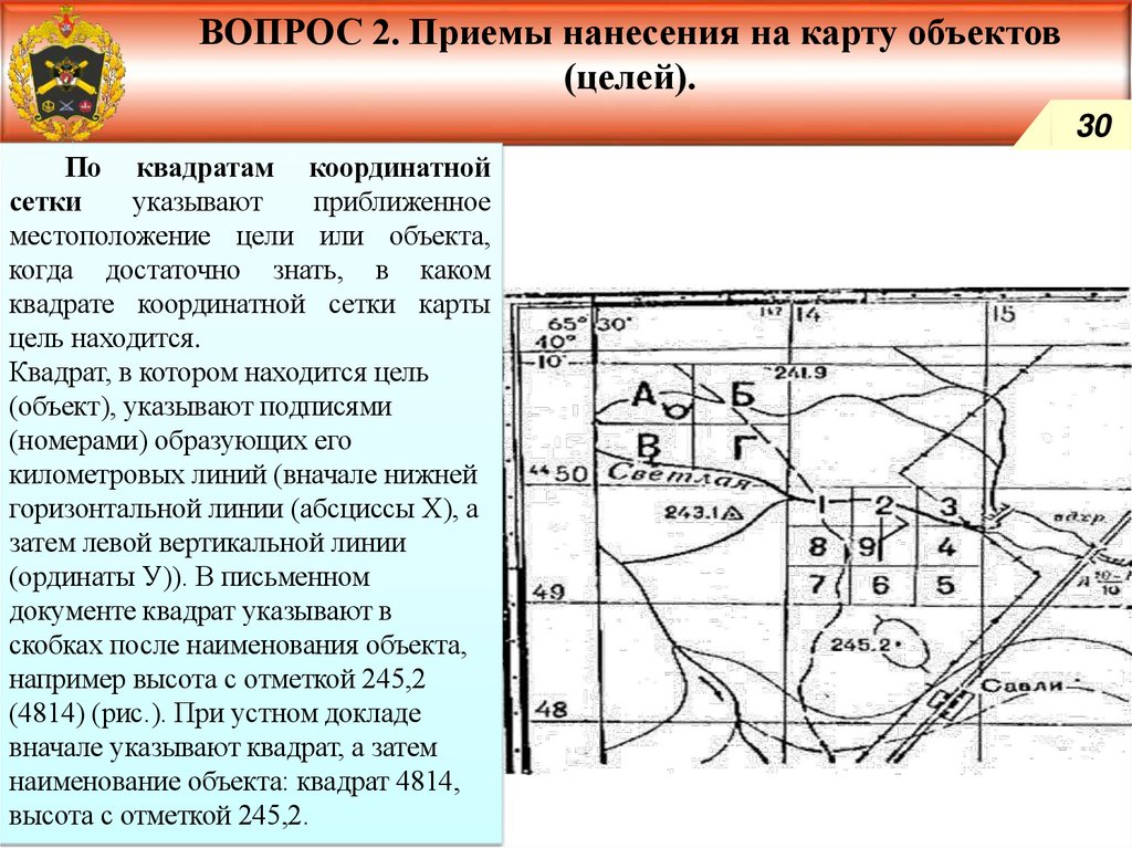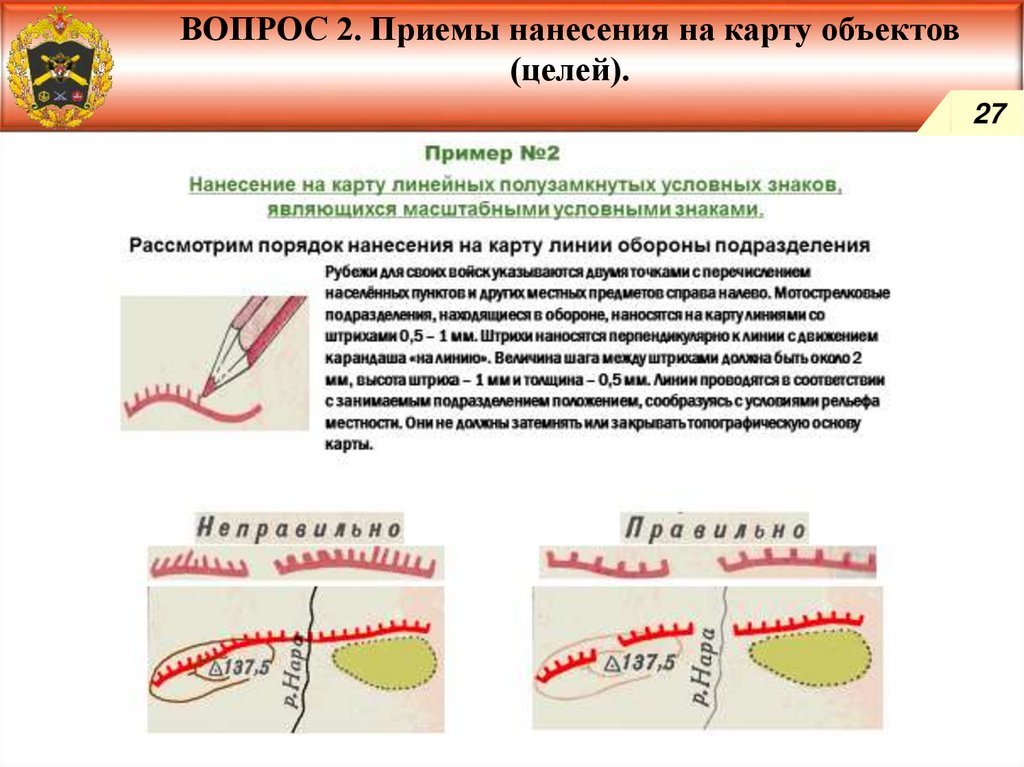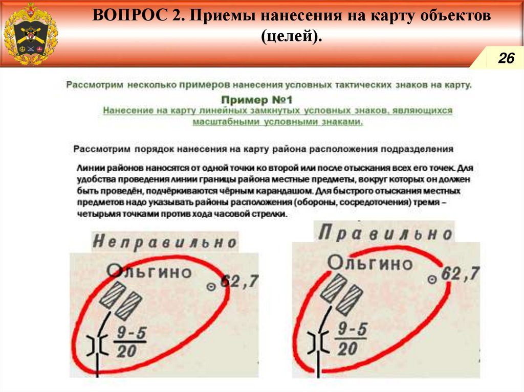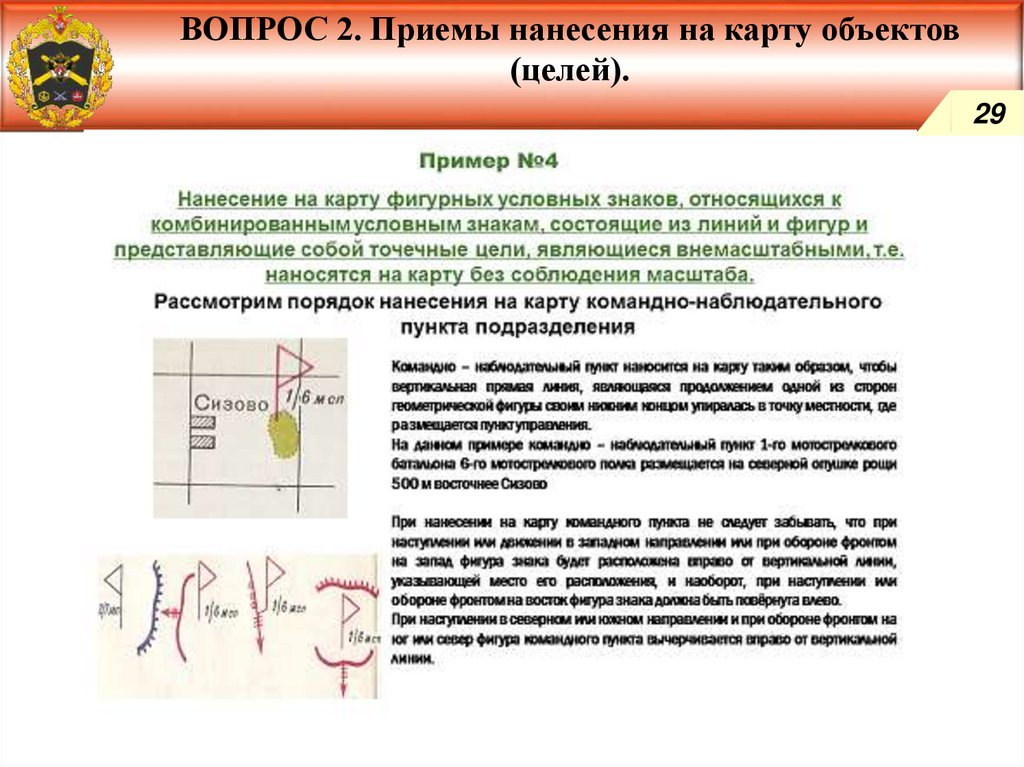 Приемы нанесения на карту объектов (целей).