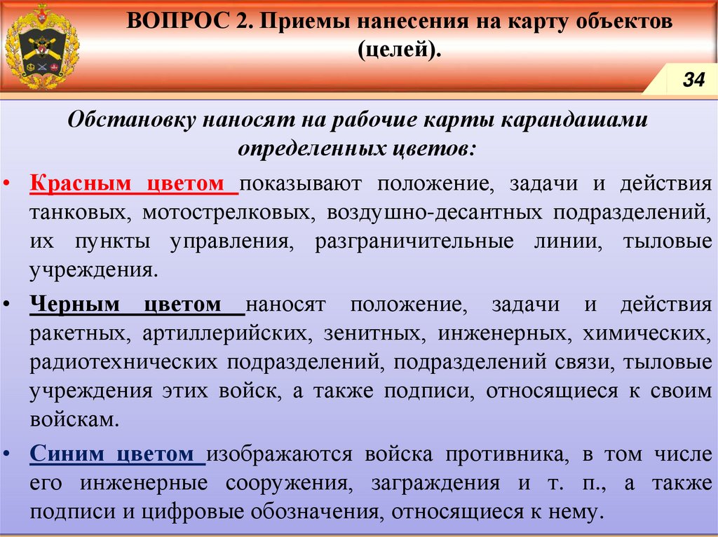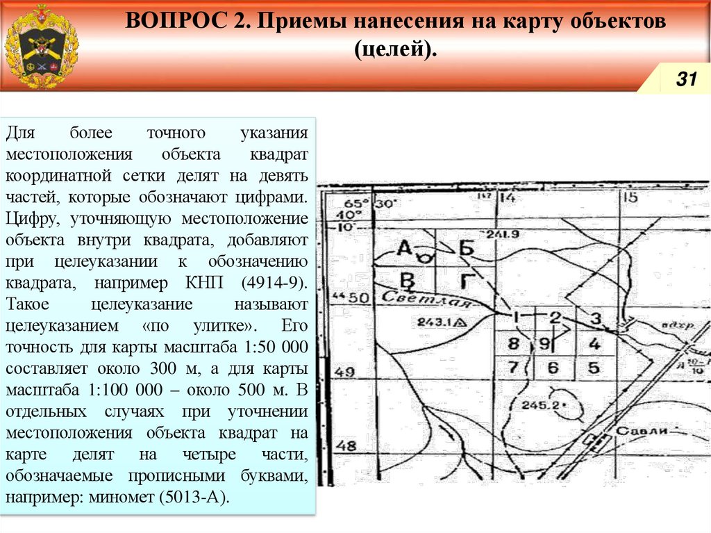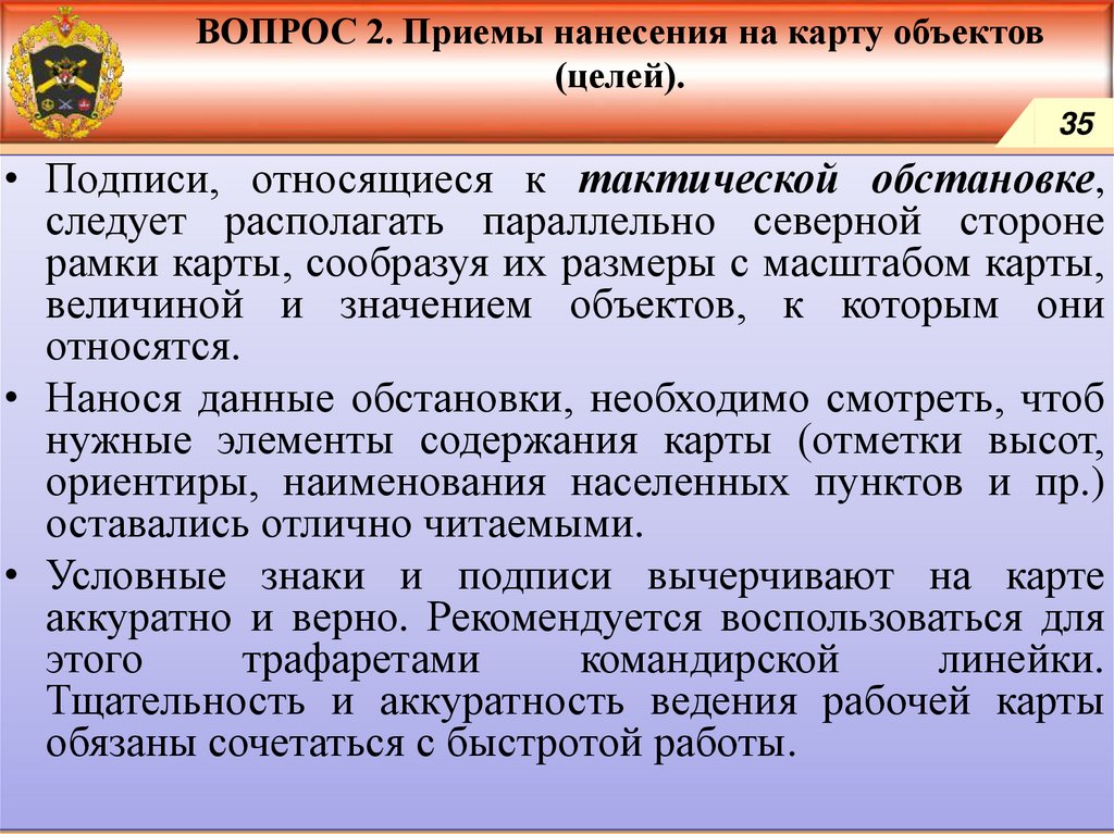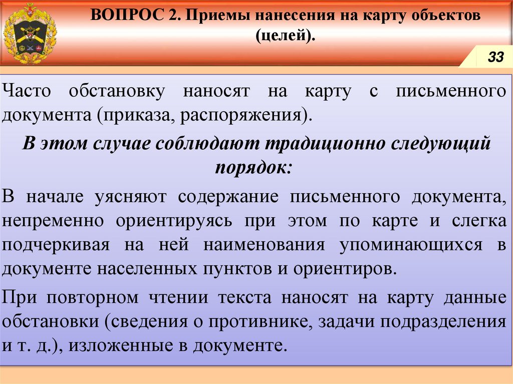 Приемы нанесения на карту объектов (целей).