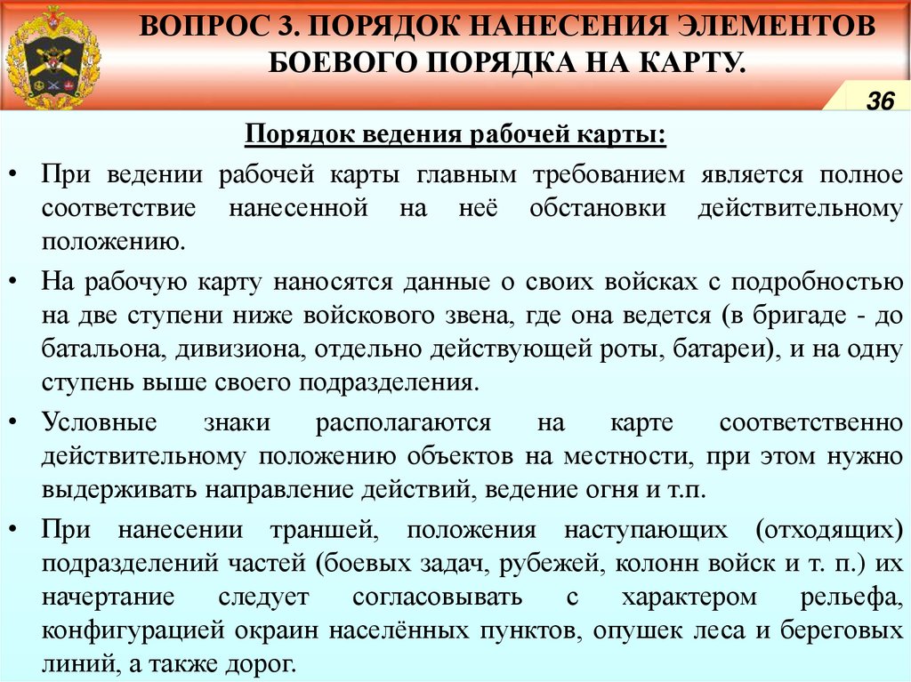 «Порядок нанесения элементов боевого порядка на карту»