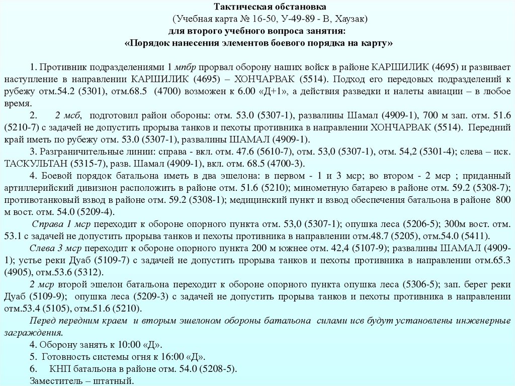 Тактическая обстановка(Учебная карта № 16-50, У-49-89 - В, Хаузак)