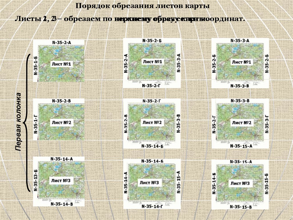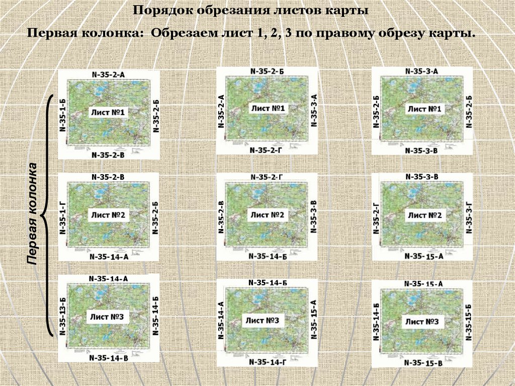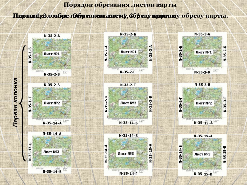 Порядок обрезания листов картыПервая колонка