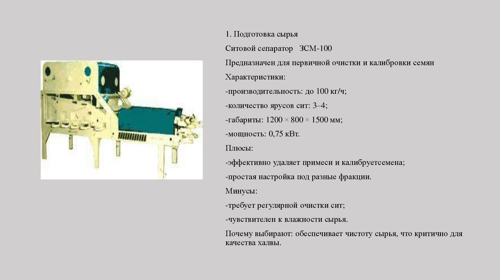 1. Подготовка сырьяСитовой сепаратор ЗСМ-100