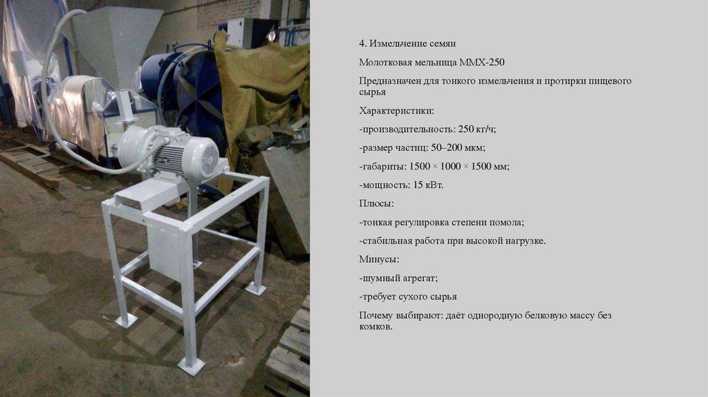 4. Измельчение семянМолотковая мельница ММХ-250