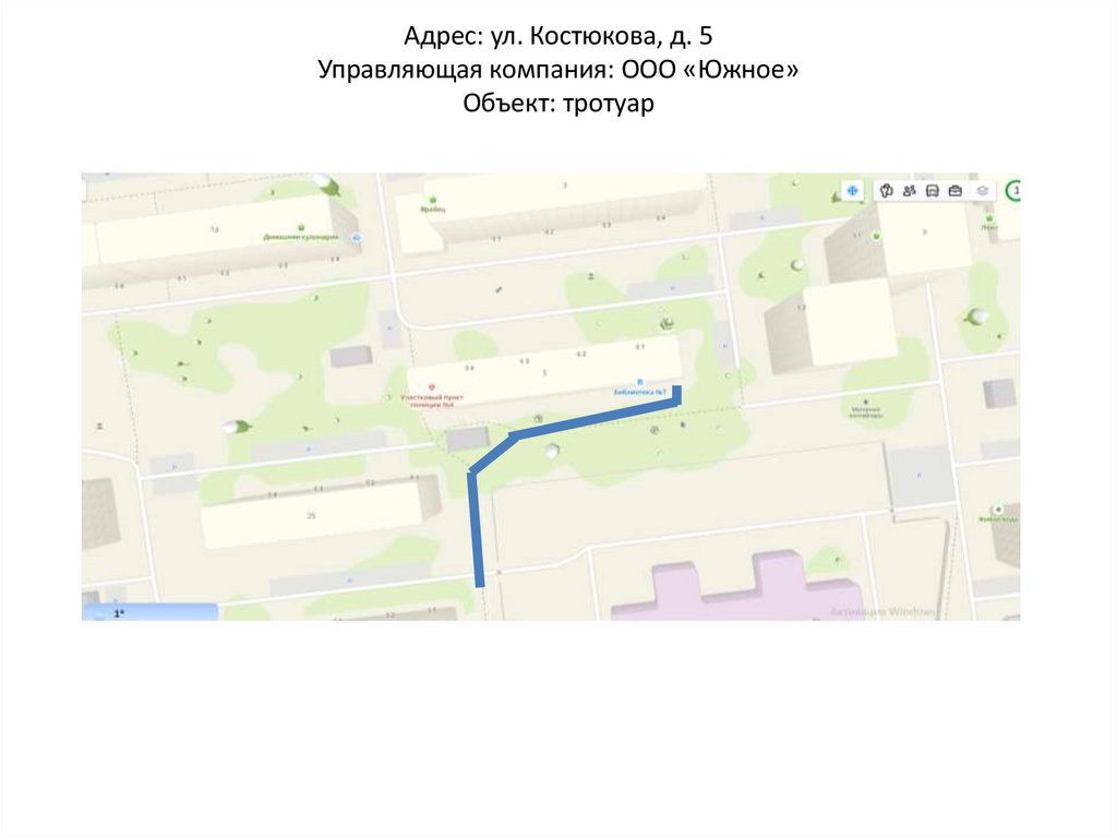 26. Адрес: ул. Костюкова, д. 24 Управляющая компания: ООО «УК Южное» Объект: тротуар