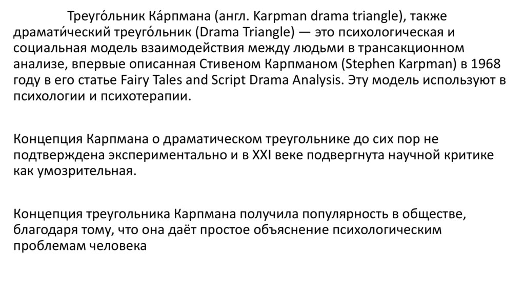 анализе, впервые описанная Стивеном Карпманом (Stephen Karpman) в 1968