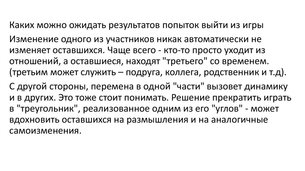 Каких можно ожидать результатов попыток выйти из игрыИзменение одного из участников никак автоматически не