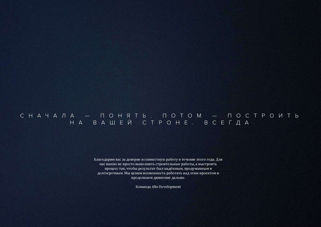 Благодарим вас за доверие и совместную работу в течение этого года. Длянас важно не просто выполнить строительные работы, а выстроить