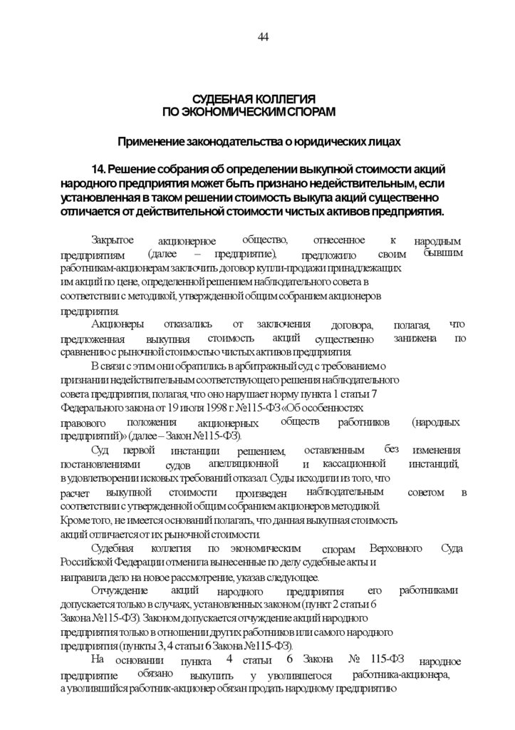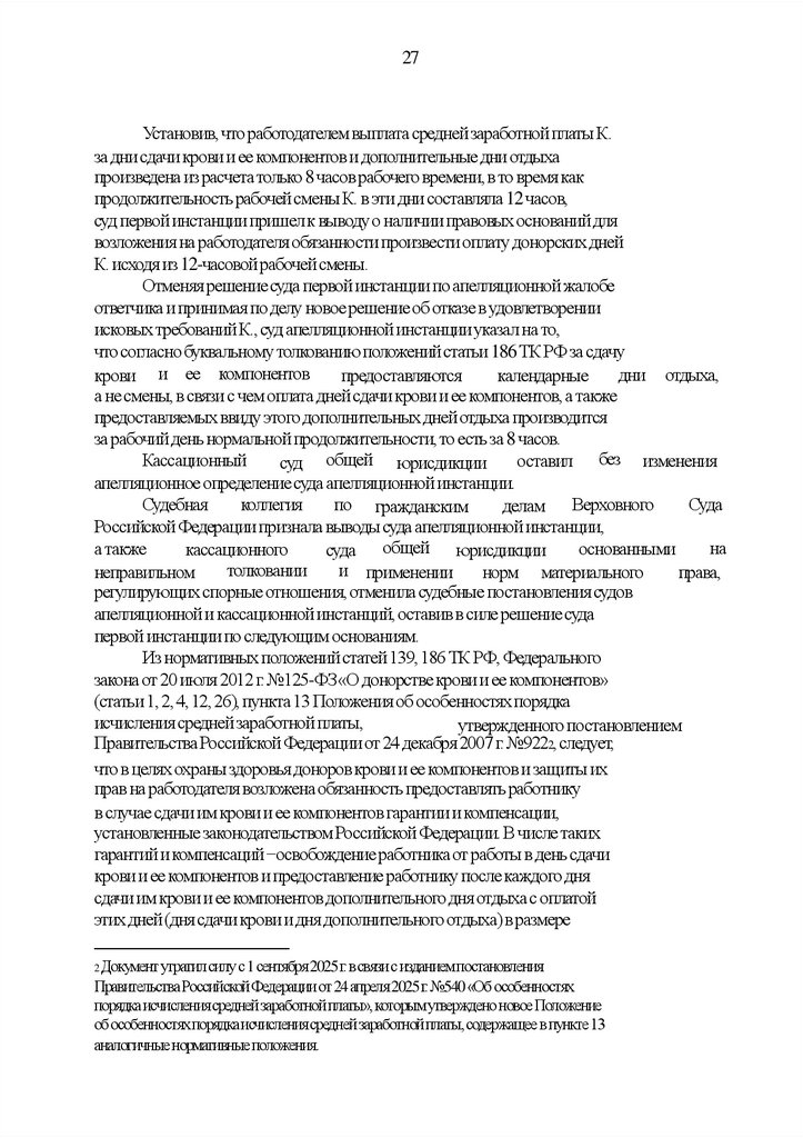 законодательства (утвержден Президиумом Верховного Суда Российской