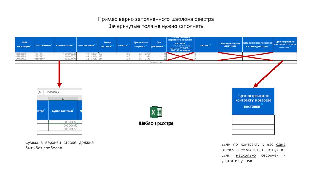 Пример верно заполненного шаблона реестраЗачеркнутые поля не нужно заполнять