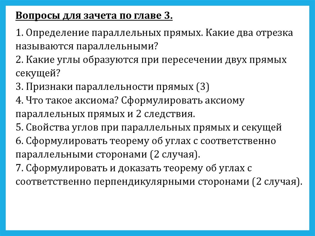 Вопросы для зачета по главе 3.1. Определение параллельных прямых. Какие два отрезка