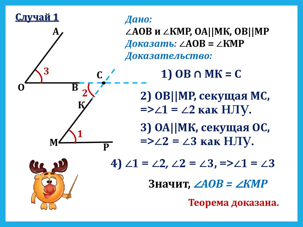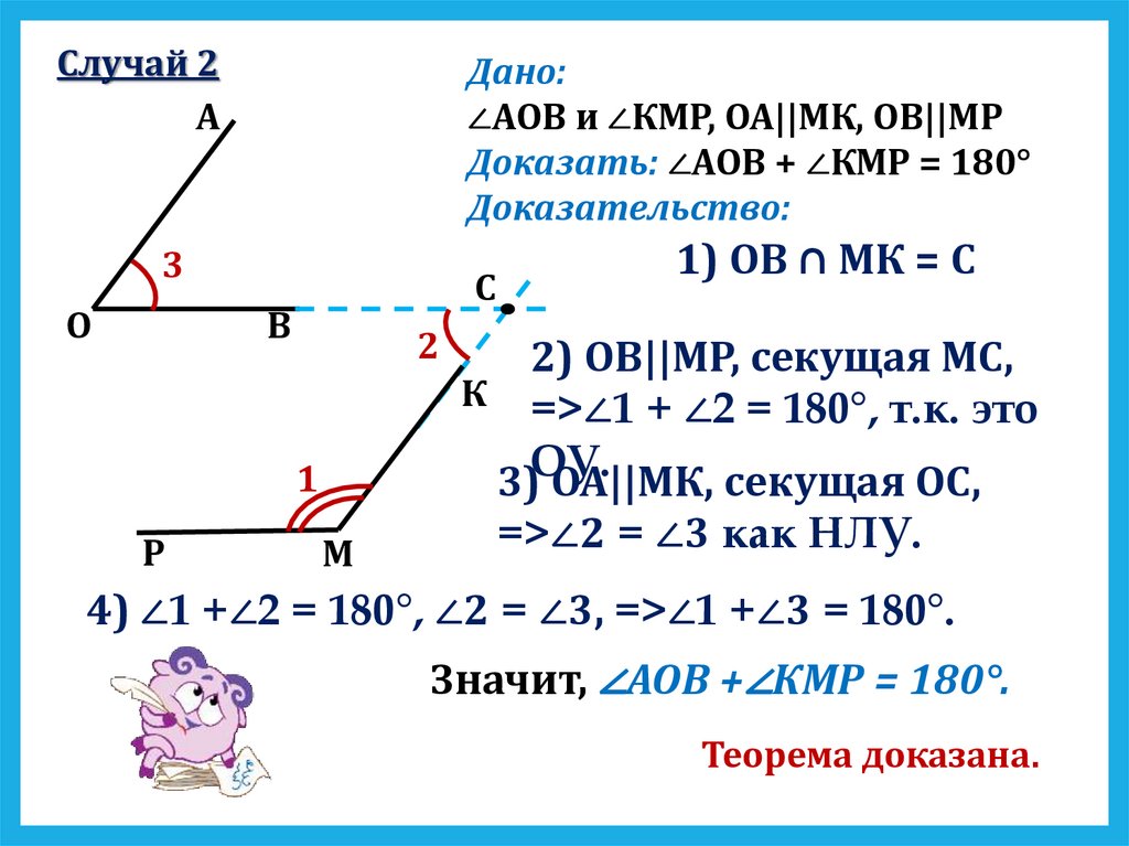 ∠АОВ и ∠КМР, ОА||МК, ОВ||МР