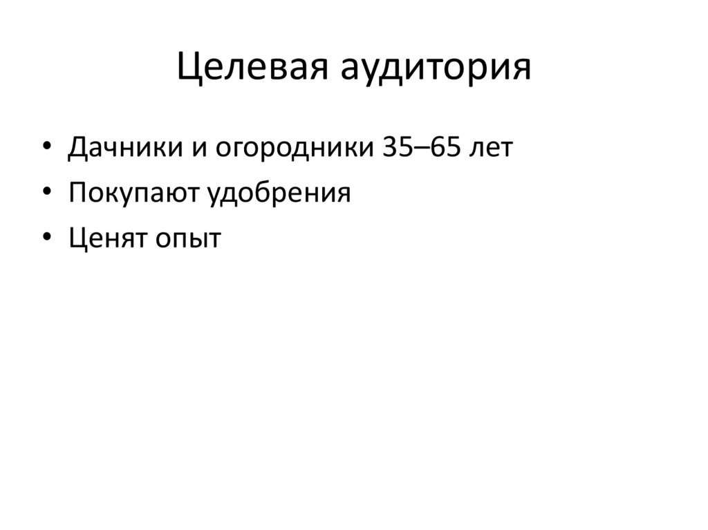 Целевая аудитория• Дачники и огородники 35–65 лет