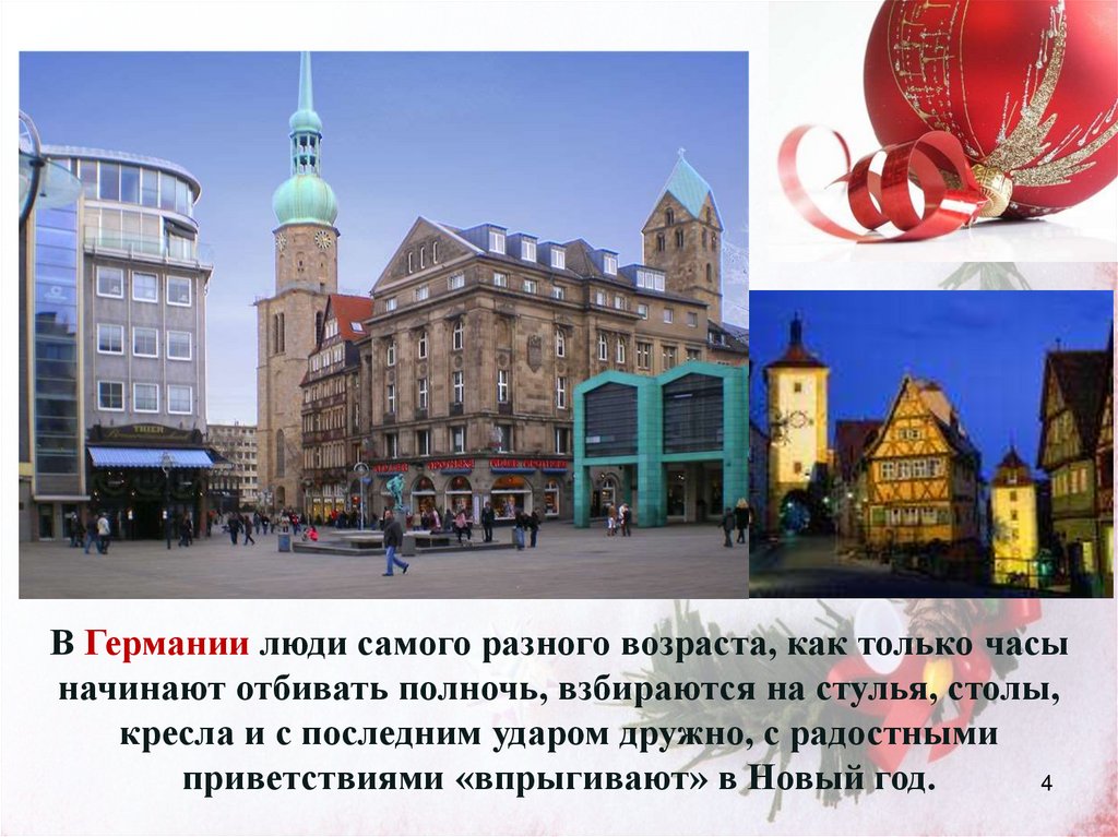 В Германии люди самого разного возраста, как только часыначинают отбивать полночь, взбираются на стулья, столы,