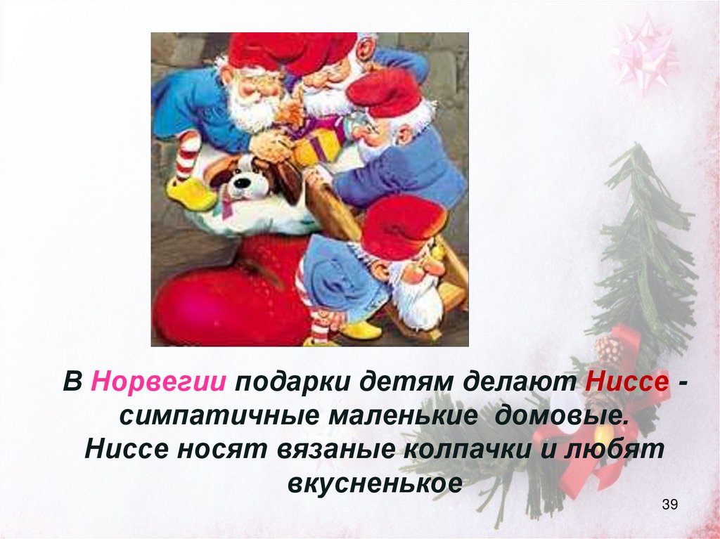 В Норвегии подарки детям делают Ниссе симпатичные маленькие домовые.Ниссе носят вязаные колпачки и любят
