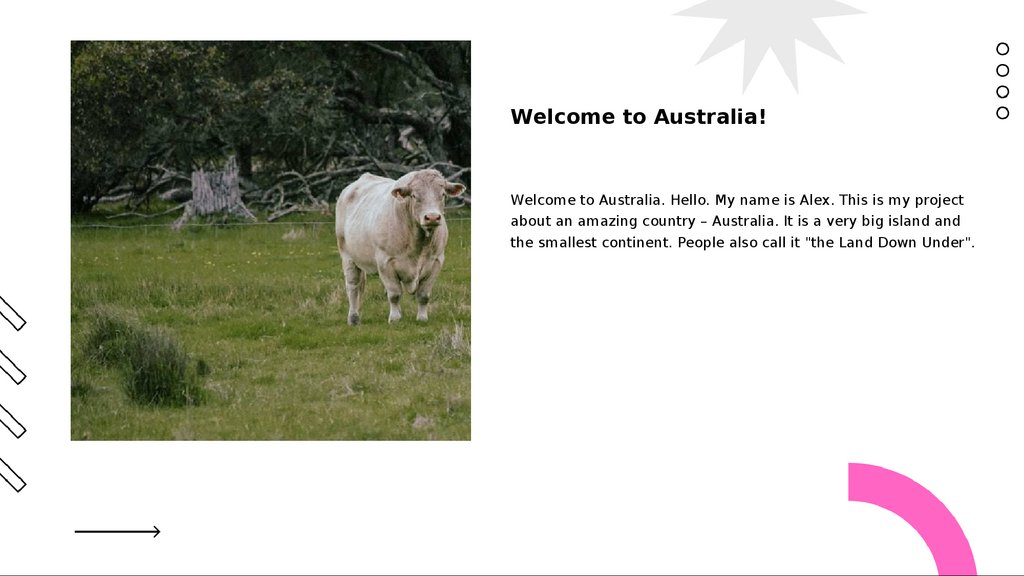 Welcome to Australia!Welcome to Australia. Hello. My name is Alex. This is my project