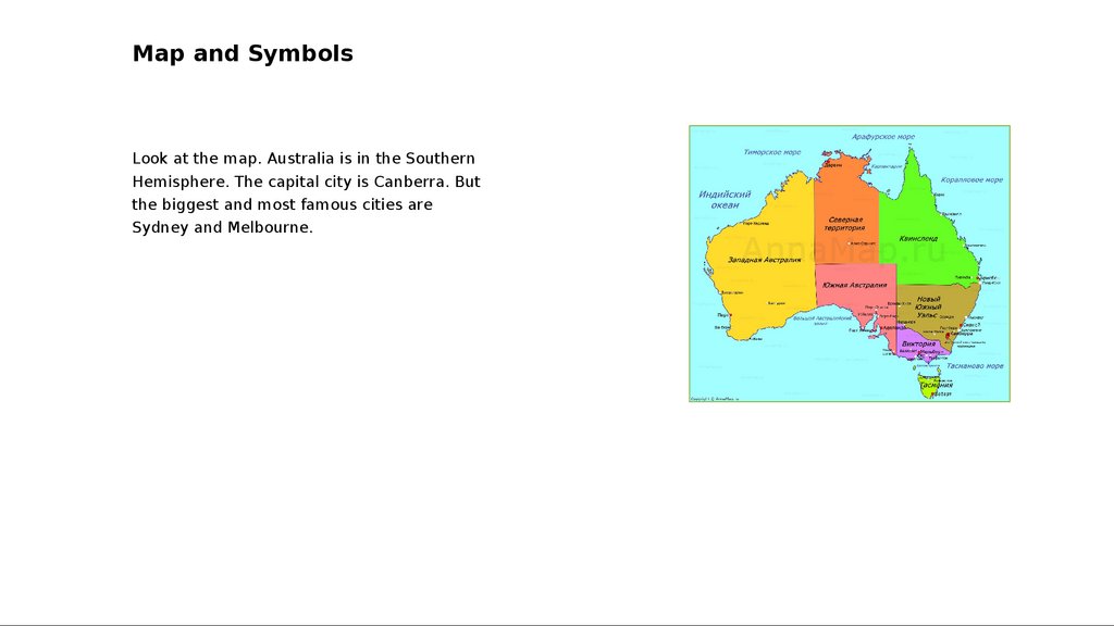 Map and SymbolsLook at the map. Australia is in the Southern