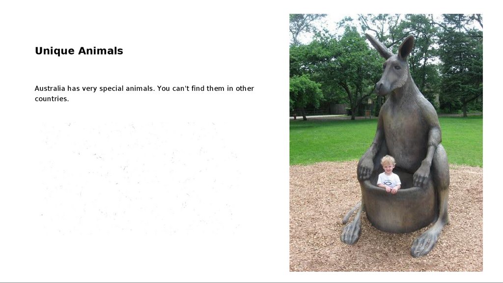 Unique AnimalsAustralia has very special animals. You can't find them in other