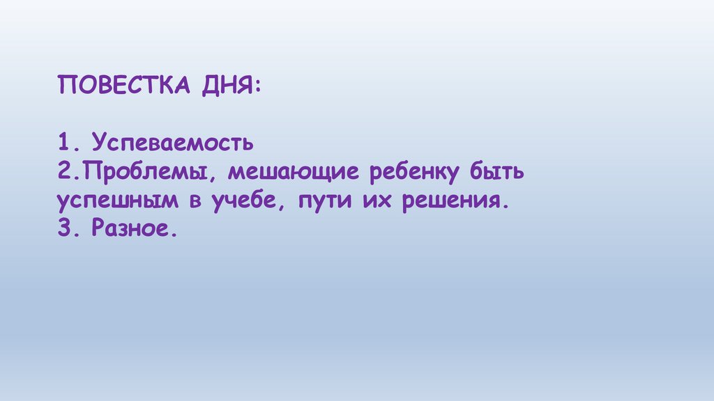 ПОВЕСТКА ДНЯ:1. Успеваемость