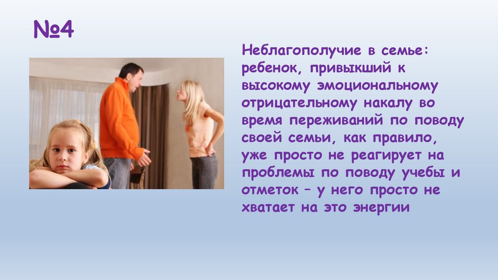 №4Неблагополучие в семье: