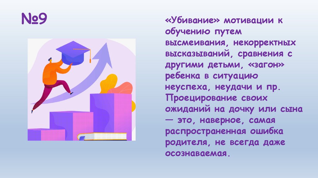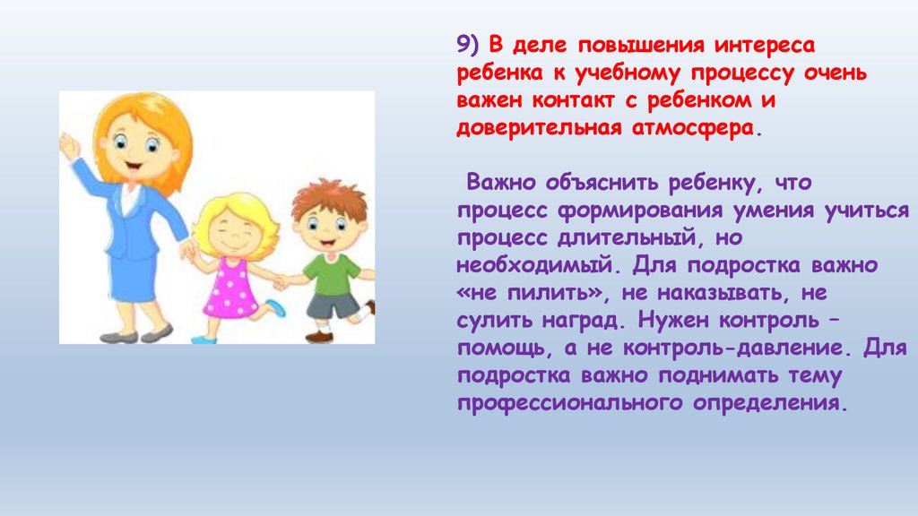 9) В деле повышения интересаребенка к учебному процессу очень